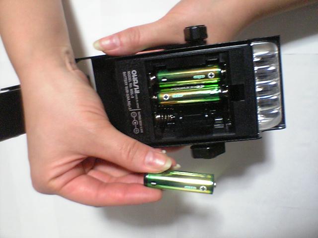 従来の電球タイプと違って光源が白色高輝度LED3個を使用しておりますので、電球が長寿命(4万時間以上)、乾電池で駆動(アルカリ単三乾電池3本で約30時間)も可能とLEDの特性によるメリットが大きいです。 |